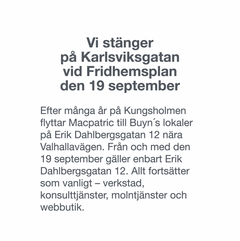 Vi på Macpatric tar vårt ansvar för de produkter och tjänster vi erbjuder på allvar. Genom att själva testa och använda de produkter samt de mjukvaror vi föreslår kan du lita på att vi är en pålitlig kompass i den moderna teknologins värld.